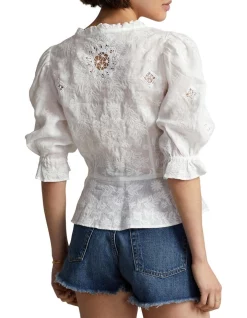 New π― Polo Ralph Lauren Floral Linen Peplum Blouse In Yellow π₯°