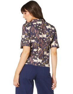 Best Sale β Princess Highway Sheep And Flora Collared Blouse Navy π―