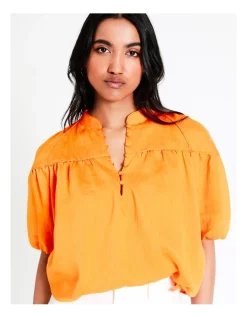 BasqueΒ Β Babydoll Blouse in Orange