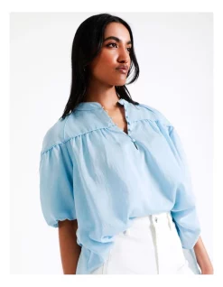 BasqueΒ Β Babydoll Blouse in Sky Blue