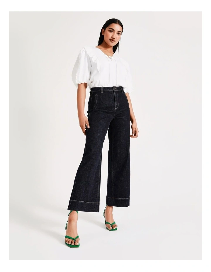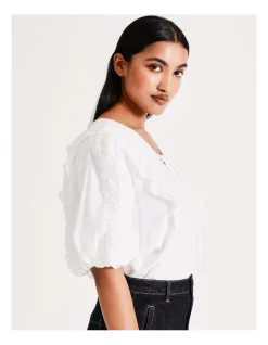 Style the perfect everyday look with a fashion-forward blouse. This blouse is decorated with chic ruffle details, alongside short puff sleeves and a V-shaped neckline. Style it with your favourite denim for a contemporary look.Β