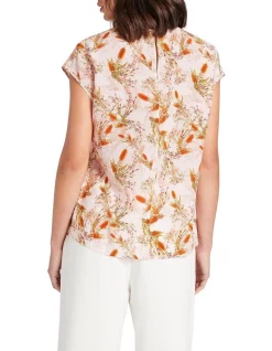 Draping beautifully through sumptuously soft silk, this top flatters within a relaxed fit, complete with grown-on cap sleeves and curved shaping at the hem. Flaunting rich tones within its exclusive floral print, the top is completed by gathers through the front of its round neckline, and a keyhole closure at the back of the neck that secures with a David Lawrence branded gold button.