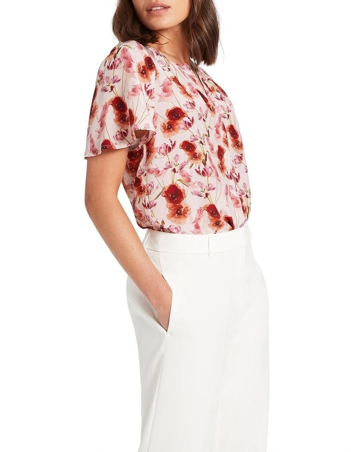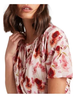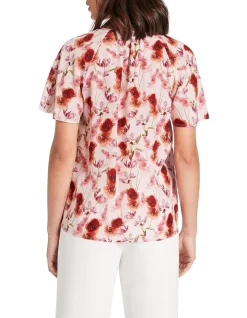 Drawing the eye to its delicate poppy print, this top reveals a rich array of pink and red tones, set on a base of pure, lightweight silk. Draping beautifully within its relaxed fit, the top fastens at the front with a concealed button closure, to show off additional detail in relaxed short sleeves, a round neckline, and shaping gathers through the front and back of the neck.