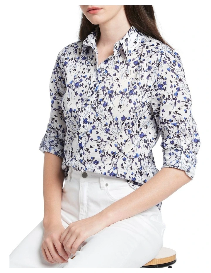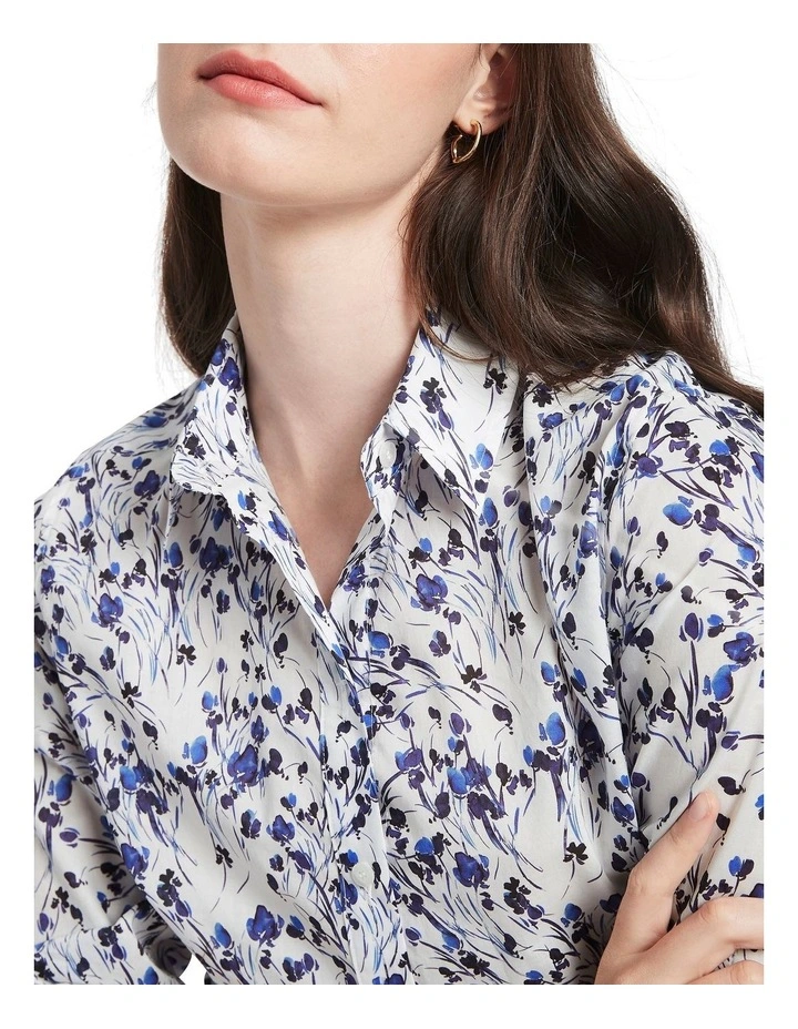 Made from cool, lightweight cotton, this long sleeve shirt reveals an intricate floral print against a white base. Offering a regular oxford fit with curved shaping through the hem, the shirt fastens with a classic button front closure, to reveal further detail in its button-tab feature at the outer arm, which allows the sleeves to be worn at the wrist or rolled up and secured.