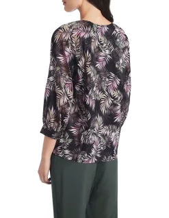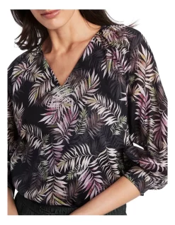 Flattering effortlessly, this blouse uses lightweightΒ cottonΒ voile to create a beautiful drape, while revealing a multi-hued leaf print against a rich black base. Featuring a loose, relaxed fit with raglan shaping through the shoulders, the blouse offers a pull-on style, finished with an open V-neckline and three-quarter length sleeves with neat button-up cuffs.