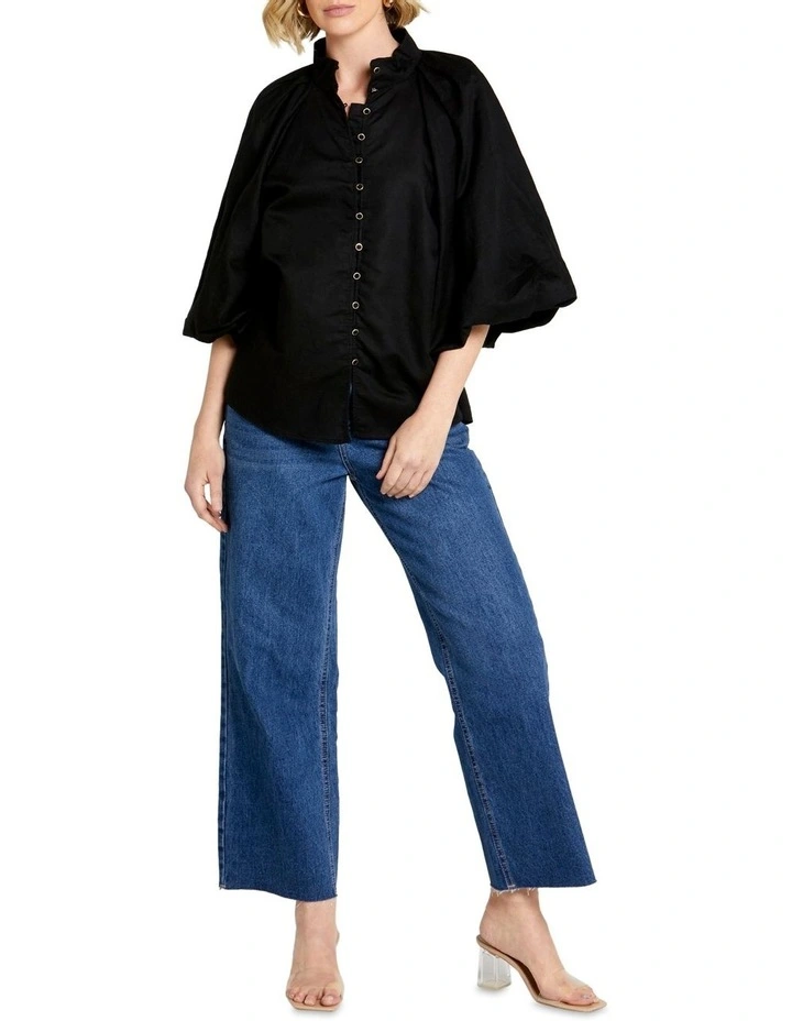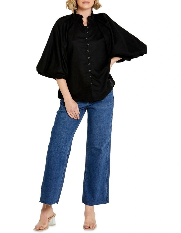 The Try and Love shirt is a versitile and luxurious fashion piece. Constructed from luxe linen, this style features a high collar neckline, statement button detailing and voluminous sleeves. A must-have style for the season.