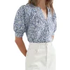 - Short blouson sleeves with shirred cuffs