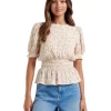 - Short puffed sleeves with shirred cuffs