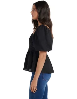 - A floaty feminine top with a ruched bodice and peplum-style hem for a fit and flare silhouette