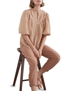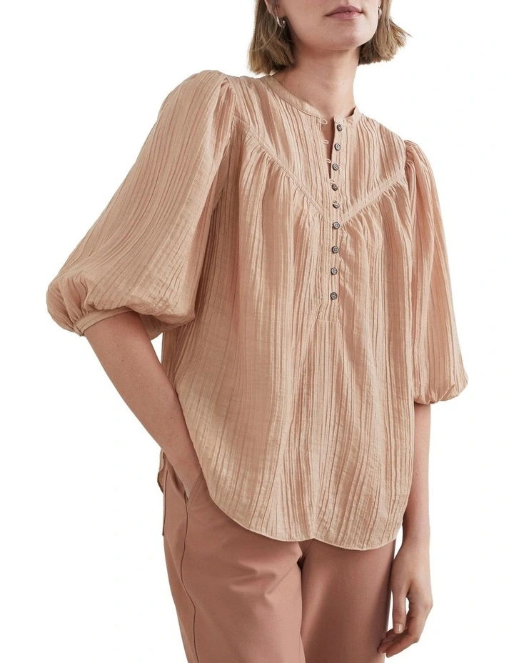 Our Summer Textured Shirt offers a flowy and comfortable design. With feature toirtoiseshell pattern buttons to the bust, this shirt features textured fabric, 3/4 sleeves and a yoke detail. Pair with our High Rise Denim Short and Milla Leather Sandal. Model wearing our Fuschia and Black Paisley colourway wears a size AU 8/XS. She usually wears a standard AU 8/XS, is 173cm tall, and has a 81cm bust, 94cm hips and 64cm waist.Model wearing our Cashew colourway wears a size AU 8/XS. She usually wears a standard AU 8/XS typed, is 180cm tall, and has a 86cm bust, 95cm hips and 69cm waist.