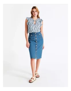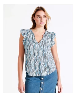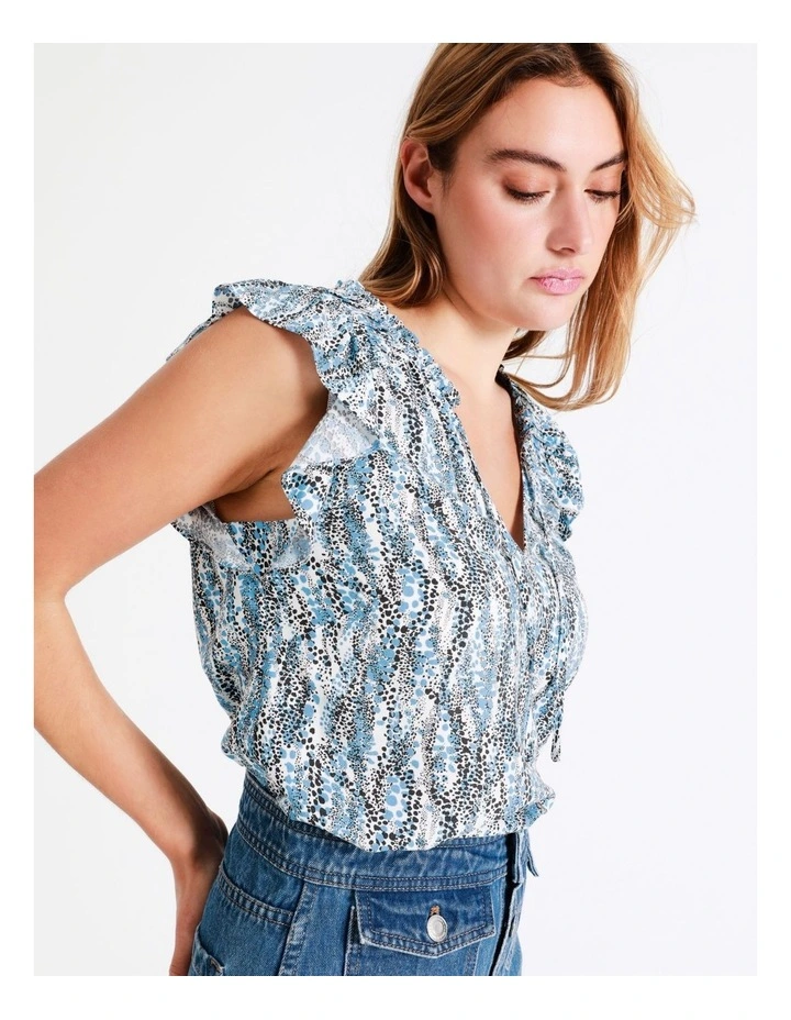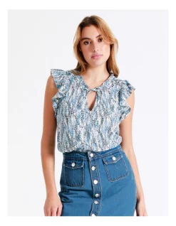 Style an impressive look with a gorgeous sleeveless top. This top boasts a ruffle detail and an all-over print. Pair with your favourite everyday outfit for an elevated look.Β Β
