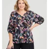 This easy pop over the head tunic style top features a flattering front V-neckline with self bind, a flat collar, long sleeves and versatile tab up button detailing. With spliced seam detailing on the front, a back yoke with subtle gathers and hem splits.