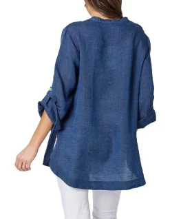A new season must have is the V Neck Tab Sleeve Tunic by Hammock & Vine. Styled in their signature yarn dyed washer finish pure linen, the perfect fabric for the season that will have you looking and feeling fabulous. An easy fitting tunic style top that features a flattering V-Neckline with self band finish, 3/4 length sleeves with versatile tab up button detail. High low hemline with splits at the side seams. Perfect paired back with denim, linen or the new jersey rib waist pant. Style that never goes out of fashion.