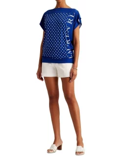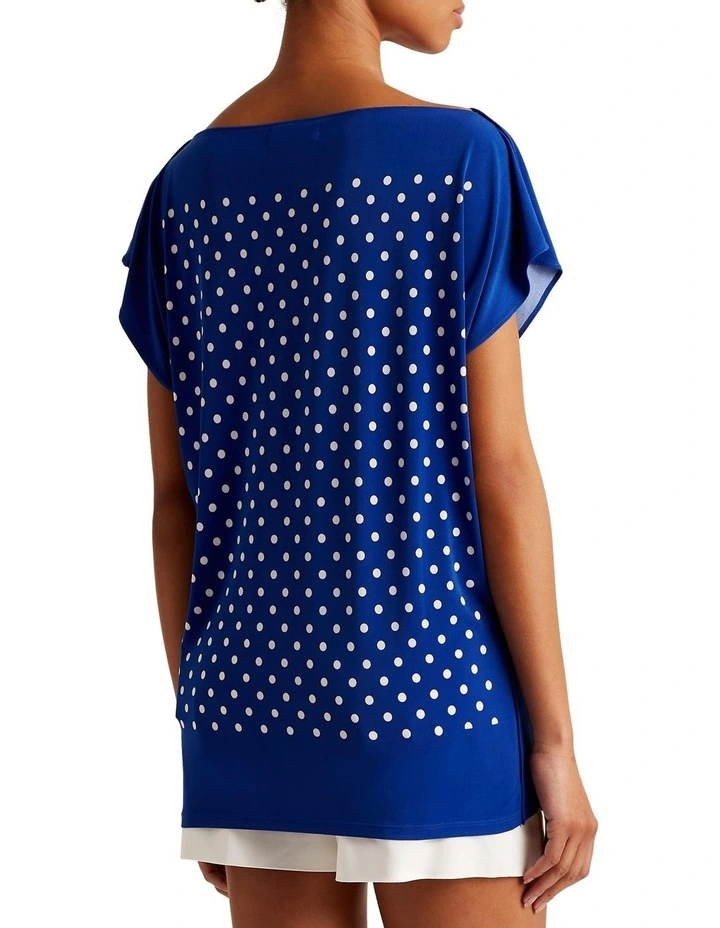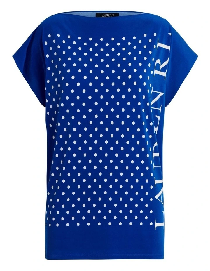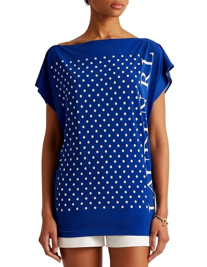 Designed with short dolman sleeves and a boatneck for a relaxed fit, this jersey top is distinguished by petite polka dots and an oversize Lauren logo down the side.