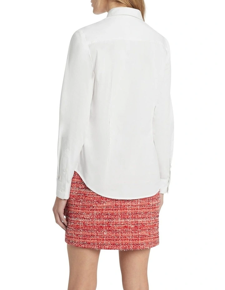 Let clean lines to the talking. Elevate your workwear wardrobe this season with our Carrie Classic Shirt. The perfect all purpose crisp white shirt. Crafted from a premium cotton and nylon blend for a breathable and comfortable finish.