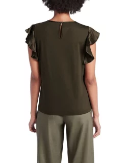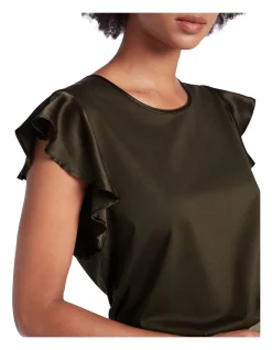 Skimming over the skin in pure mercerised cotton, this top pairs back beautifully in rich forest night green, accentuated by silk satin detailing at the stitched neckband and short flutter sleeves. Offering a relaxed fit with straight shaping through the body, the top also features neat crew neck shaping with a back-of-the neck fastening secured with a Marcs branded metal button.