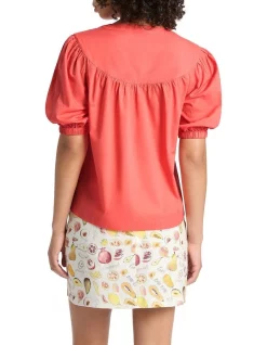 Delivering cool, comfortable summer styling, this shirt feels lightweight and breathable in pure cotton, as it flaunts a beautiful shade of peach blossom. Featuring soft gathers through the yoke, the shirt continues to appeal with a neat collarless neckline, short balloon sleeves with elasticated cuffs, and a button fastening to the waist featuring dyed-to-match Marcs logo buttons.