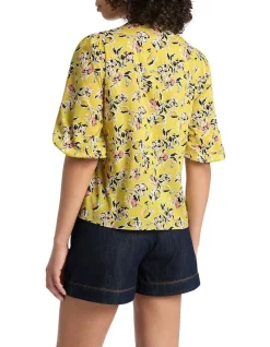 Flaunting delicate florals within beautiful Ceylon yellow, this blouse skims over the skin in pure cotton, playing to summer as it reveals effortless, relaxed shaping. Accentuated by three-quarter length balloon sleeves gathered in with elasticated cuffs, the blouse is completed by dyed-to-match Marcs logo buttons at the front fastening, below a round, collarless neckline.