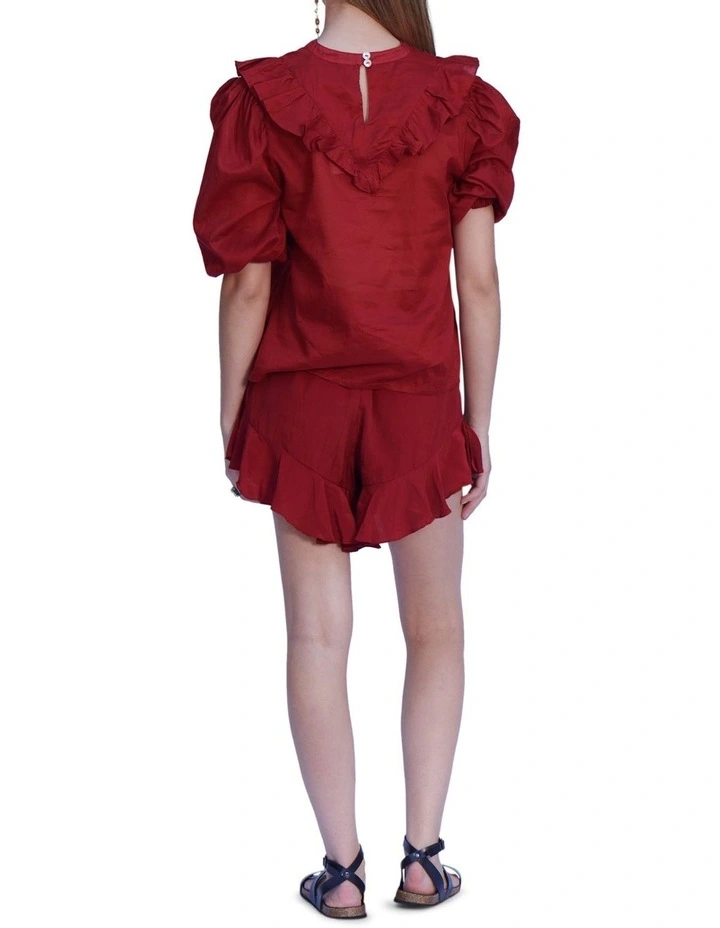 - Front ruffle detail and balloonedΒ sleeves for a dreamy, femme look
