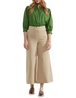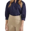 A graceful and versatile style, the Iris Cotton Poplin Blouse will take you from work to play. This shirt is designed for a relaxed fit with an elegant pleated design. It is crafted from cotton with a poplin finish and features three-quarter length ballooned sleeves, wide cuffs, a round neckline, and concealed button placket. Complete an effortless summer look with some wide-leg pants and sandals.
