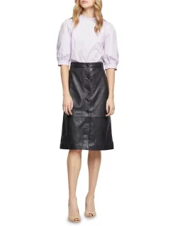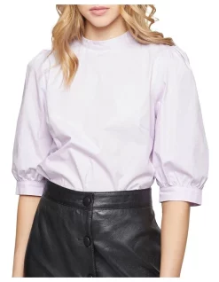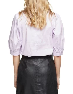 The Lizzie Cotton Top is effortless elegance. This graceful design is crafted from 100% cotton and cut in a relaxed fit with a sleek high neckline, ballooned sleeves, and keyhole back fastening. This versatile top will go with anything! try it with a leather skirt or wide-legged pants.