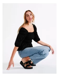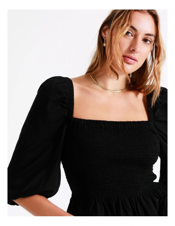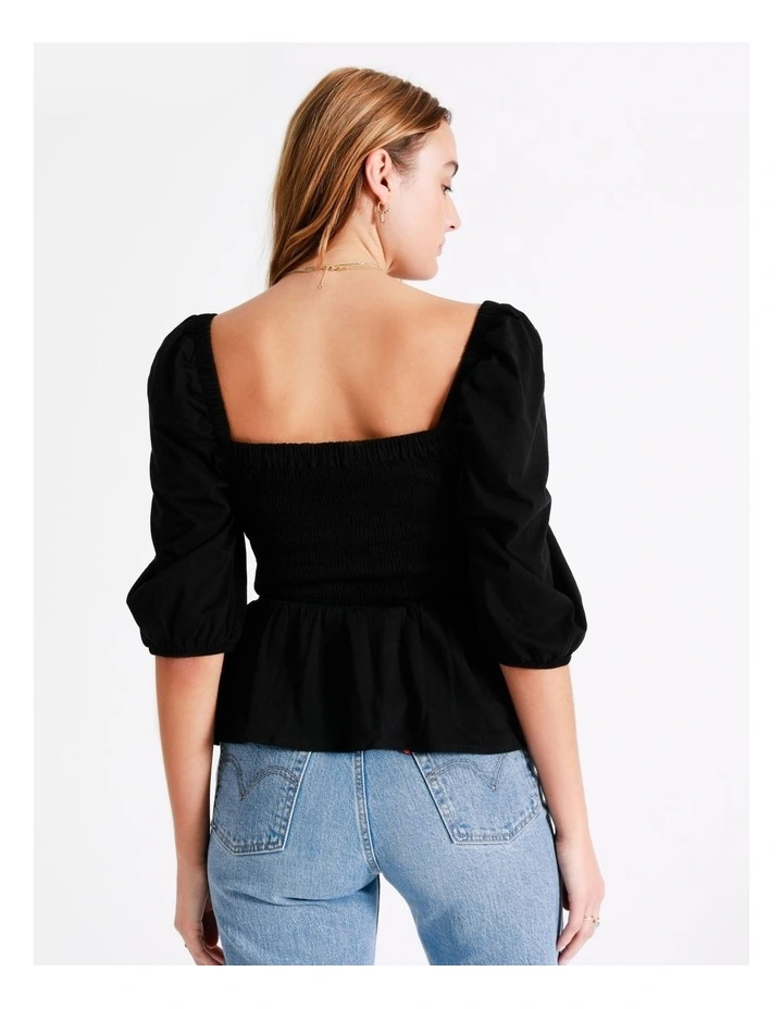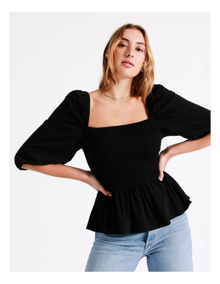 Go from desk to dinner in our shirred bodice top. This top features short balloon sleeves alongside a shirred bodice and a rounded neckline. Lightweight and breathable, this top is a comfortable yet chic option.