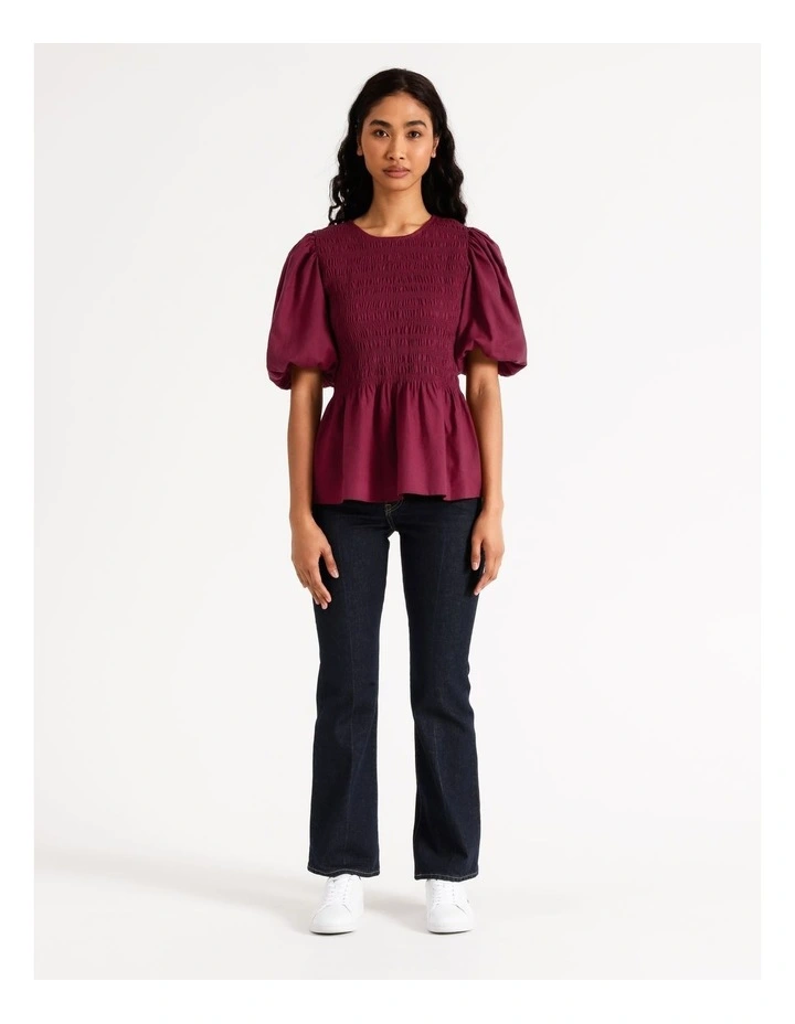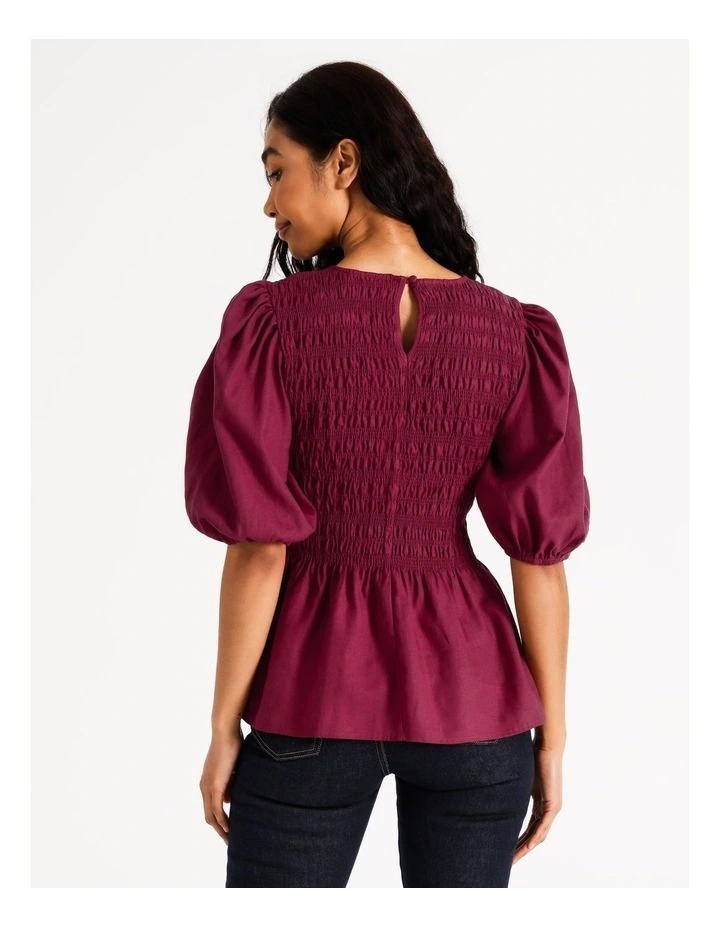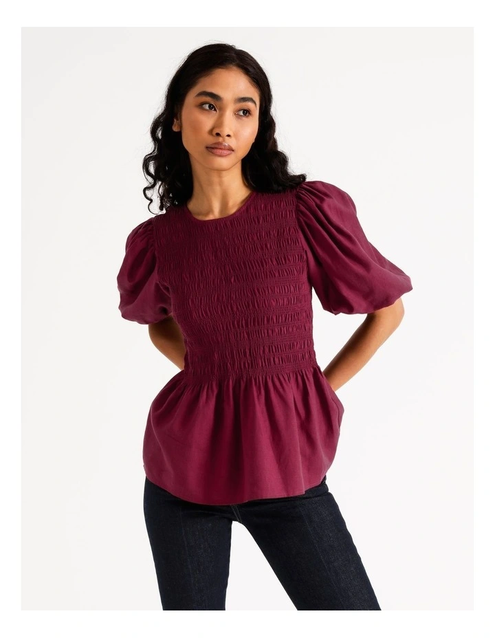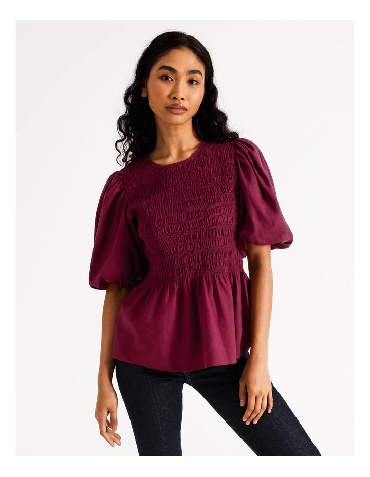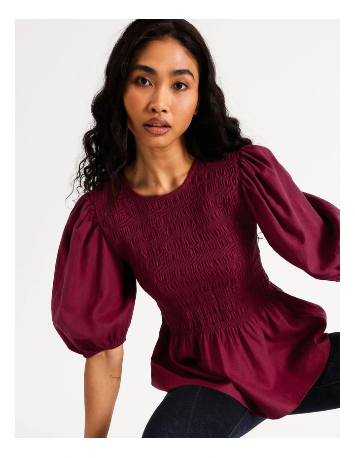 Go from desk to dinner in our shirred puff sleeve blouse. This top features statement puff sleeves alongside a shirred bodice and a rounded neckline. Lightweight and breathable, this top is a comfortable yet chic option.