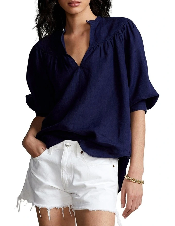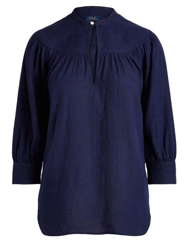 - Three-quarter-length raglan sleeves with buttoned barrel cuffs.