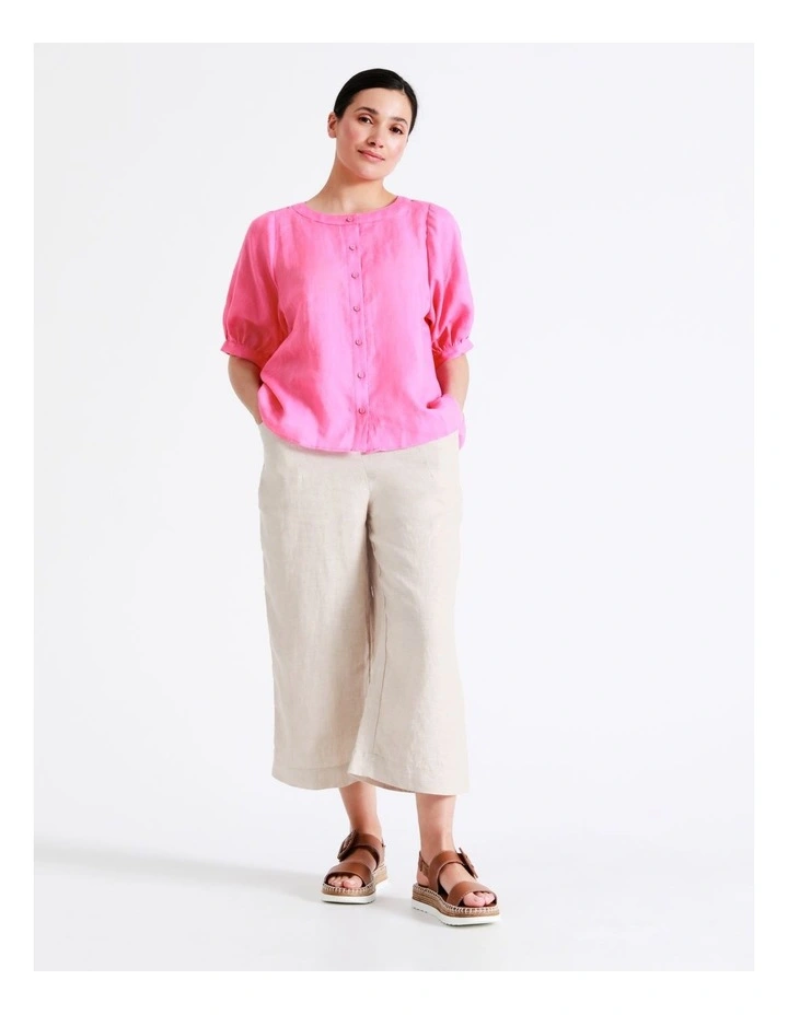 You can never have too many casual tops. This shirt has a button up front and is made from lightweight ramie. Wear it with your favourite denim or slacks for the perfect everyday look.Β