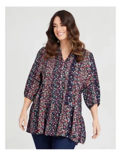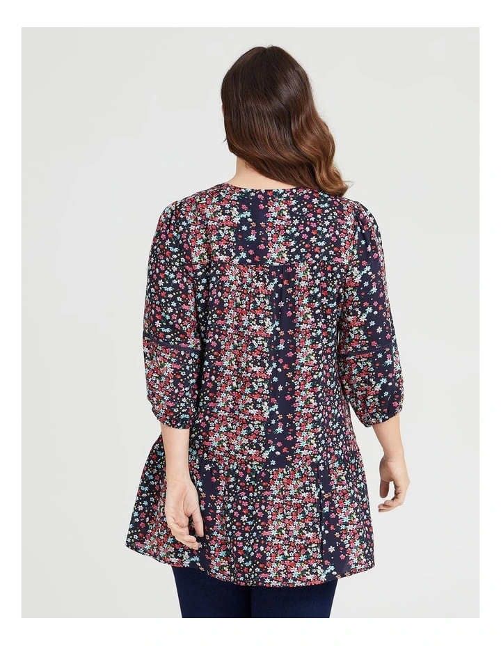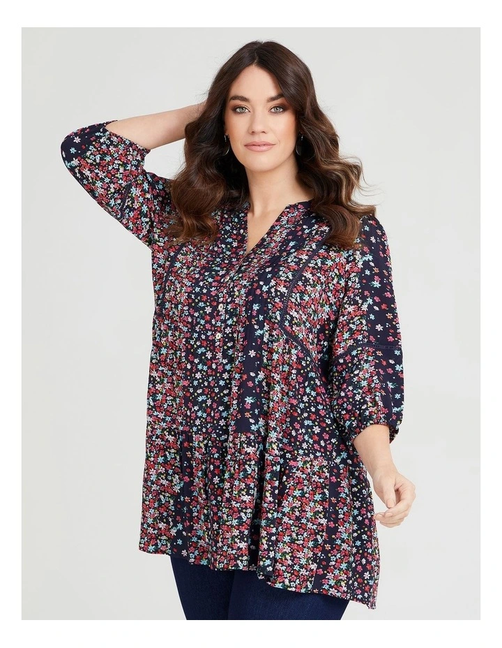 Lots of great elements come together to make this Natural Ditsy Print Tunic Print a fabulous addition to your wardrobe. Featuring a gorgeous pattern, flattering cut and easy to wear style. This plus-size relaxed tunic features a split v-neckline, tiered layers, front button detail and 3/4 length sleeves.