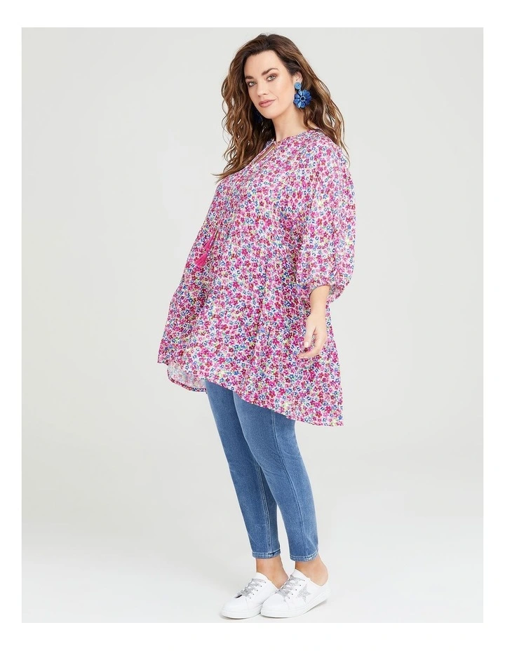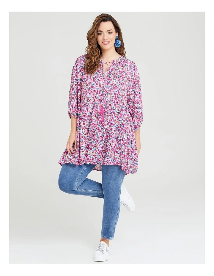 Spring into something fun, colourful and full of life! The Natural Watercolour Ditsy Tunic features a gorgeous ditsy floral print and is perfect to elevate your casual wardrobe. With a curve-flattering silhouette featuring tiers and a lovely floaty, natural viscose – this plus-size tunic is a dream to wear and feels lightweight and breathable on the skin. Featuring a tie front with tassel trim, 3/4 length sleeves and soft elastic cuffs, pair this tunic with your favourite jeans or leggings for a lovely Spring look!