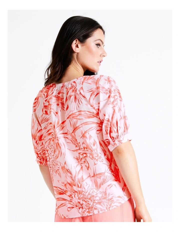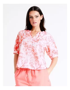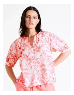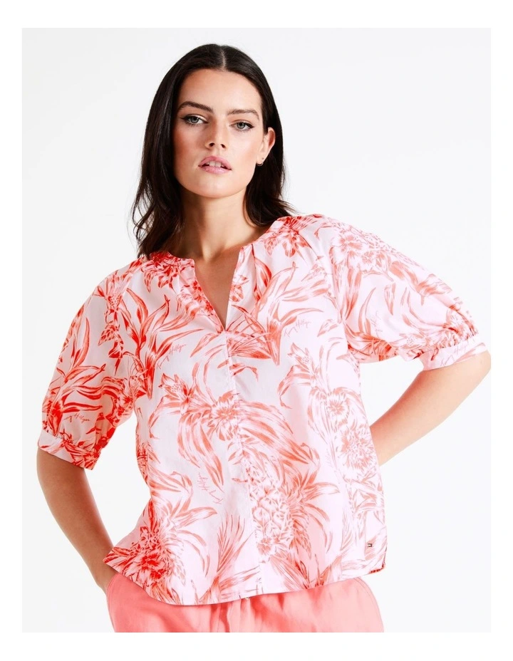 Get holiday ready in this all-over print blouse which is constructed from breathable cotton voile in a relaxed-fit silhouette.