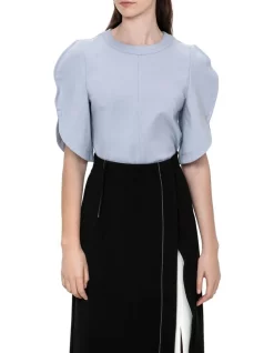 Brand new 𧨠Veronika Maine βοΈ Summer Linen Fluted Sleeve Top In Pale Stone π