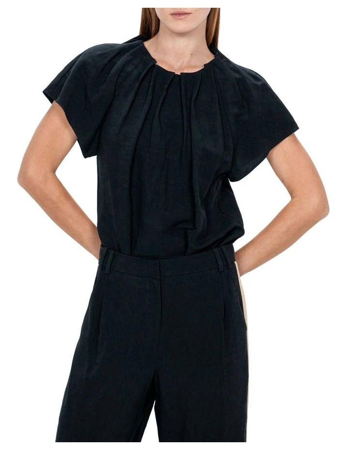 Brand new 𧨠Veronika Maine βοΈ Summer Linen Fluted Sleeve Top In Pale Stone π