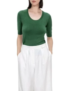 Buy βοΈ Veronika Maine Short Sleeve Round Neck Rib Knit In White π