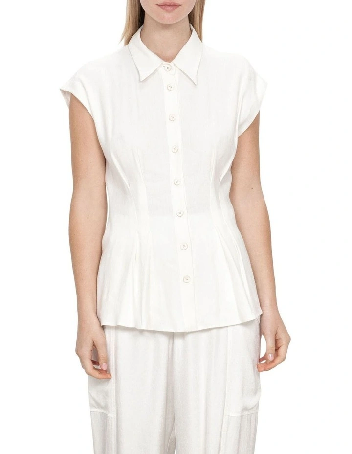 Brand new 𧨠Veronika Maine βοΈ Summer Linen Fluted Sleeve Top In Pale Stone π