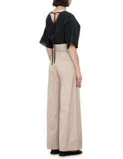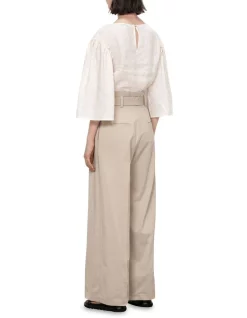 Brand new 𧨠Veronika Maine βοΈ Summer Linen Fluted Sleeve Top In Pale Stone π