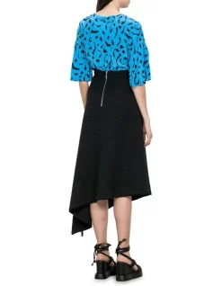 Fashioned from our luxurious Azure printed fabric, this new season top offers a modern way to incorporate bold hues into your wardrobe this summer. Designed with a round neckline and pleat detailing, this top is defined by its soft, drapey sleeves. Wear yours tucked into tailored black trousers and finish with leather heeled boots for a contemporary look.