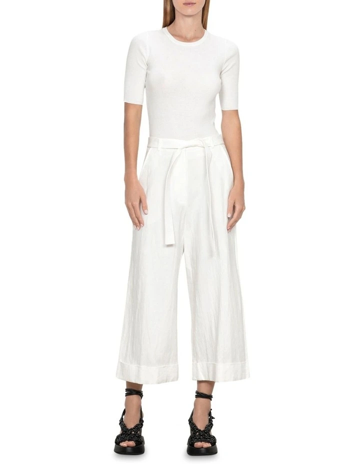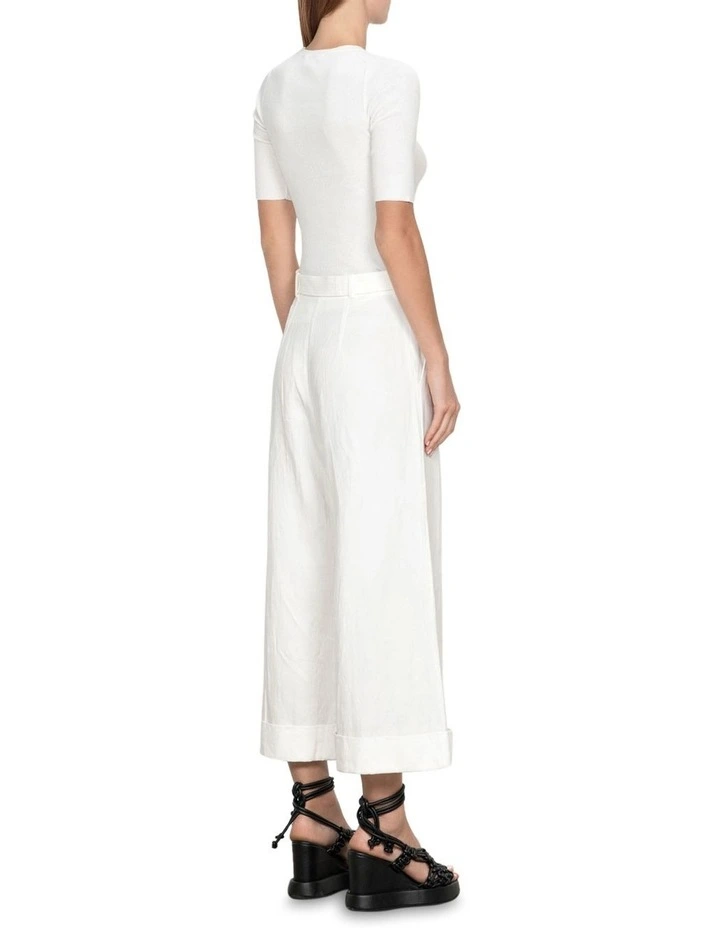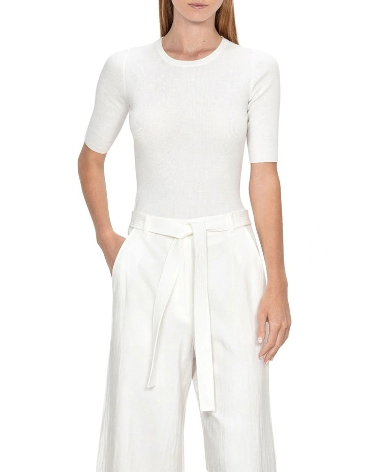 Update your casual separates with this soft ribbed knit. Featuring short sleeves, fitted body and a round neck, making it the perfect summer go-to. Pair with relaxed tailoring or your favourite skirt.