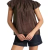 Brand new 𧨠Veronika Maine βοΈ Summer Linen Fluted Sleeve Top In Pale Stone π
