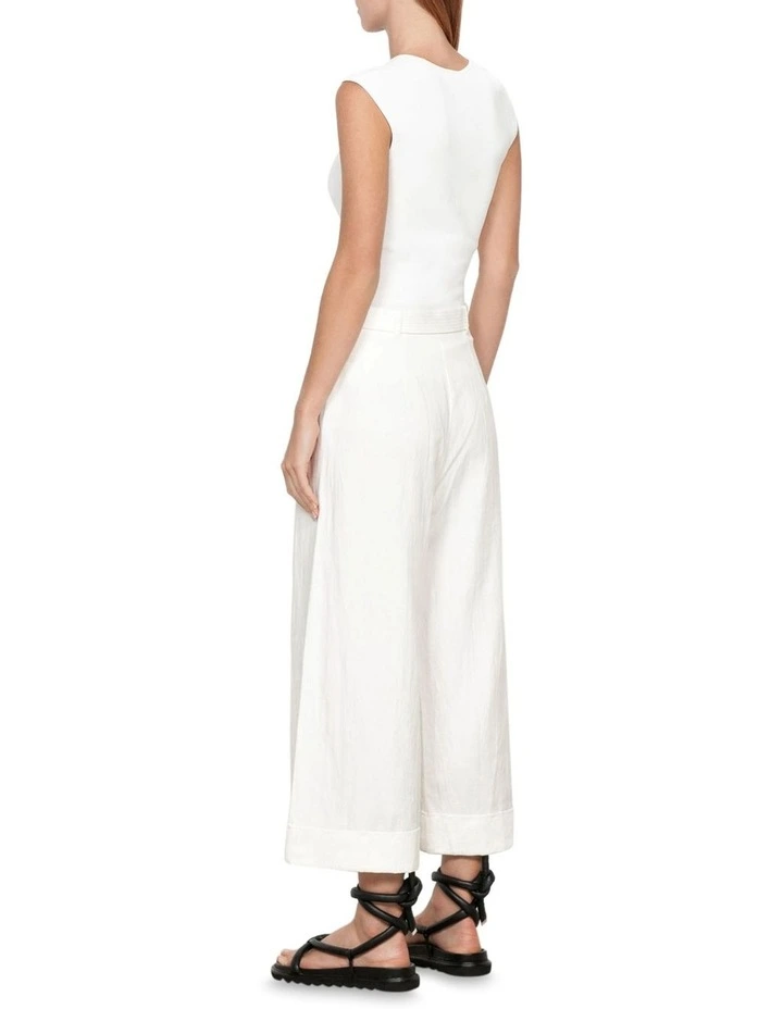 Brand new 𧨠Veronika Maine βοΈ Summer Linen Fluted Sleeve Top In Pale Stone π