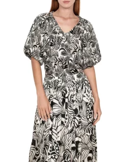 This top is a part of our Forward collection. Designed in a crinkle georgette, our effortless Vanilla Ferns Printed Top offers a lightweight option for those warmer months. This style features a flattering v-neckline with gentle gathers that fall to a relaxed fit. Wear yours with our Ebony Ferns Maxi Skirt for a harmonious mixed print combination.